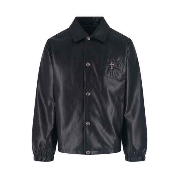 - 가죽 소재로 제작된 아우터로, 크로스 형태의 디자인이 특징입니다.