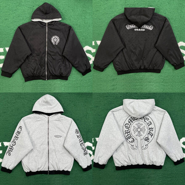 - 이 제품은 크롬하츠의 G.E.D 홀스슈 리버시블 후드 집업 자켓으로, 양면 착용이 가능한 후드가 달린 아우터입니다.