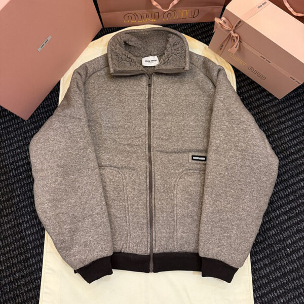 - 미우미우의 집업 블루종 코튼 플리스 자켓으로 보온성과 편안함을 제공합니다.
