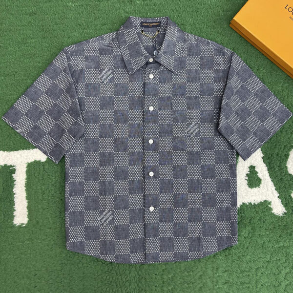 루이비통 다미에 패턴이 적용된 반팔 셔츠입니다. 간편한 상의로 일상에서 활용하기 좋은 디자인입니다.