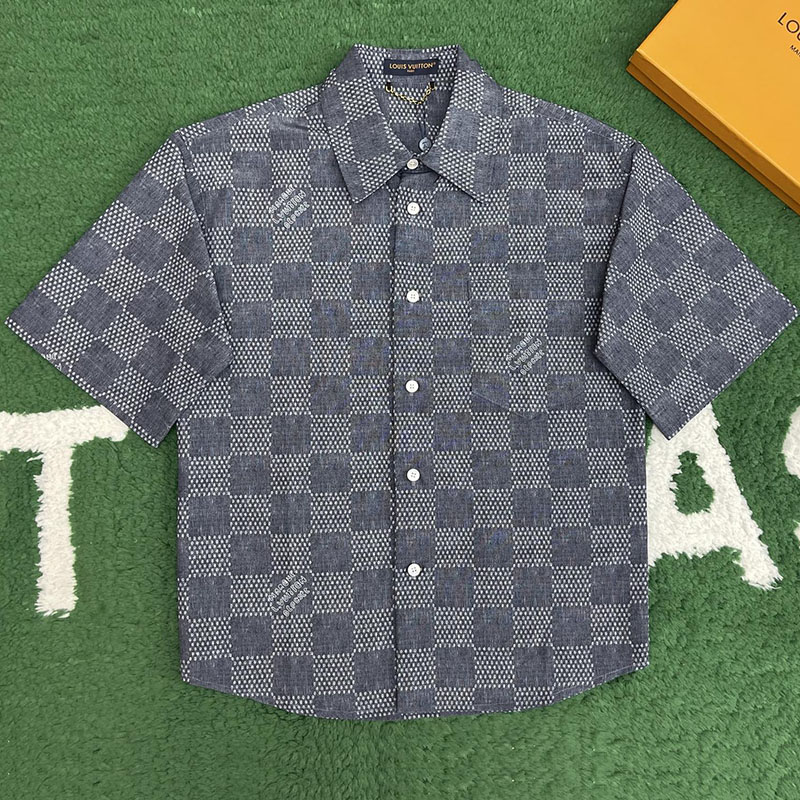 • 루이비통 잔디집 다미에 샴브레이 반팔 셔츠로, 캐주얼한 상의 아이템입니다.