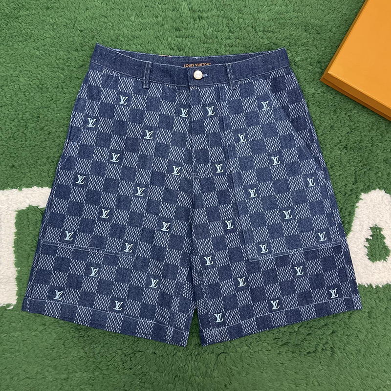 루이비통 다미에 엠브로이더드 데님 숏 팬츠입니다. 청량한 데님 소재와 독특한 자수 디자인이 특징입니다.