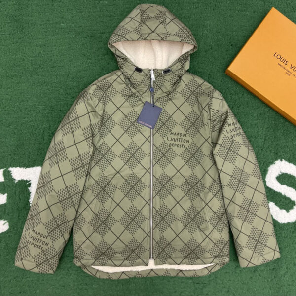 - 루이비통의 다미에 패턴이 특징인 리버서블 나일론 앤드 후리스 윈드브레이커입니다.