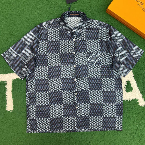 루이비통의 다미에 패턴이 돋보이는 실크 반팔 셔츠입니다. 편안한 착용감을 제공하는 제품입니다.