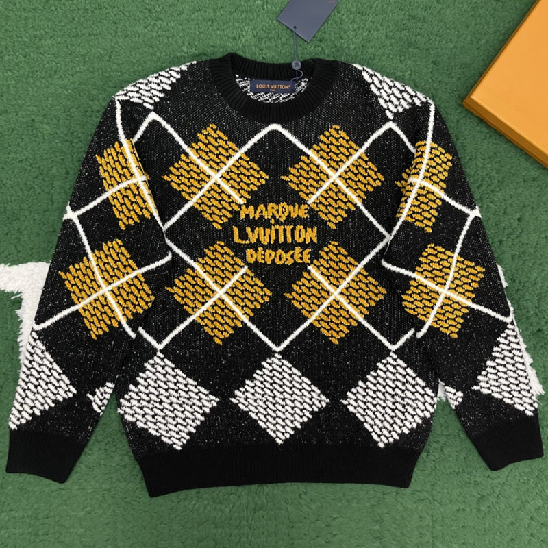 - 루이비통 잔디집 다미에 울 아가일 패턴의 풀오버 니트 스웨터로, 봄과 가을에 착용하기 적합합니다.