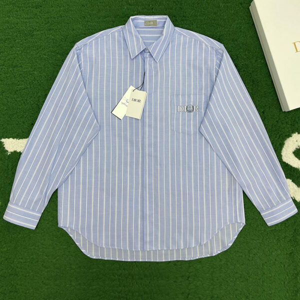 디올의 오버사이즈 스트라이프 셔츠입니다. 여유로운 핏으로 다양한 스타일에 매치 가능합니다.