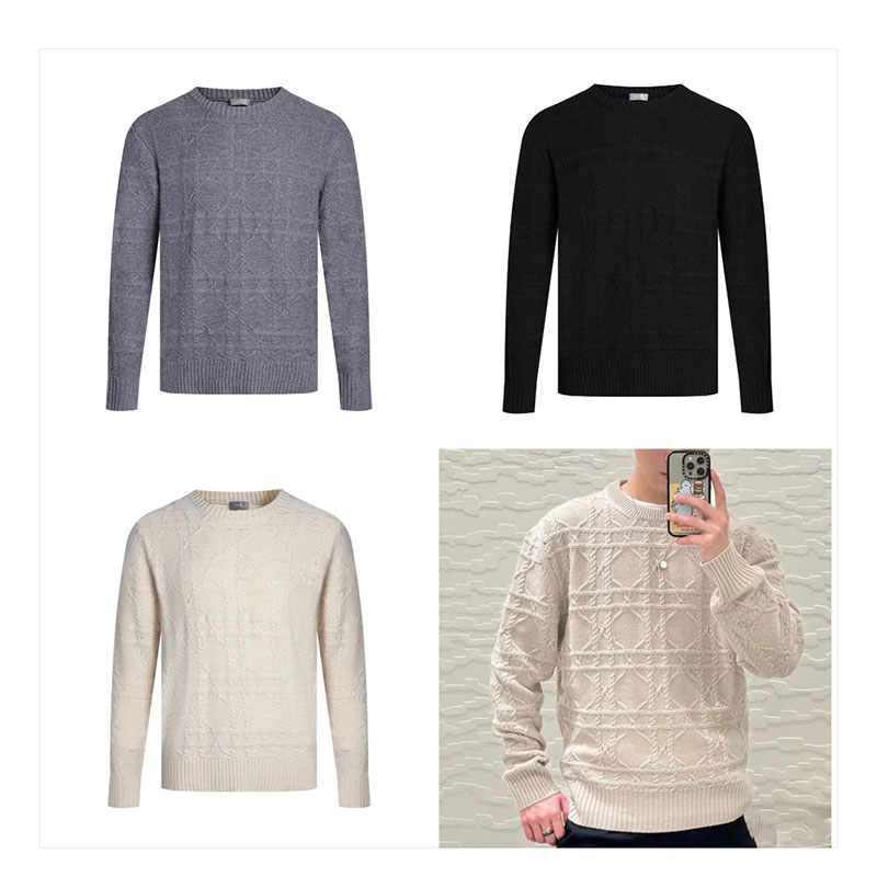 - 디올 브랜드의 스웨터 니트로, 아이코닉 까나쥬 패턴이 특징입니다.
