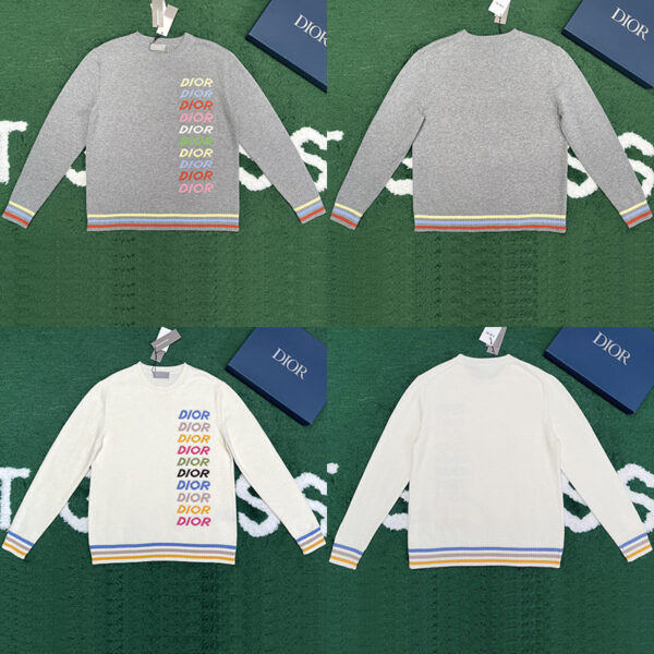 - 디올 멀티 로고 인타르시아 울 캐시미어 스웨터는 니트 상의로 디자인되었습니다.