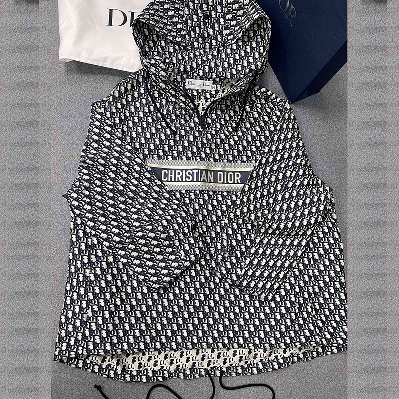 - 디올 브랜드의 후드가 포함된 아노락 스타일 집업 아우터입니다.