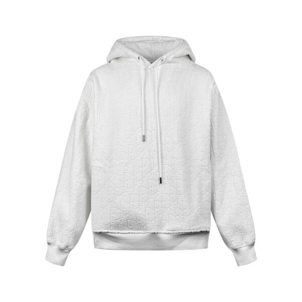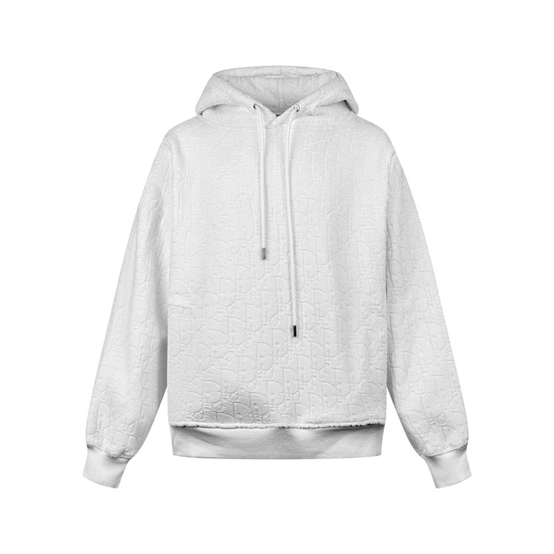 - 디올 브랜드의 후드 스웨터로, 오버사이즈 핏과 오블리크 모티브 디자인이 적용되었습니다.
