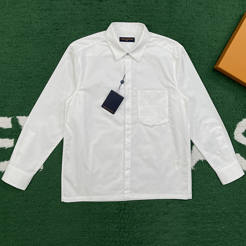루이비통 엠보스드 롱 슬리브드 포켓 셔츠입니다. 다양한 스타일에 활용할 수 있는 기본 아이템입니다.