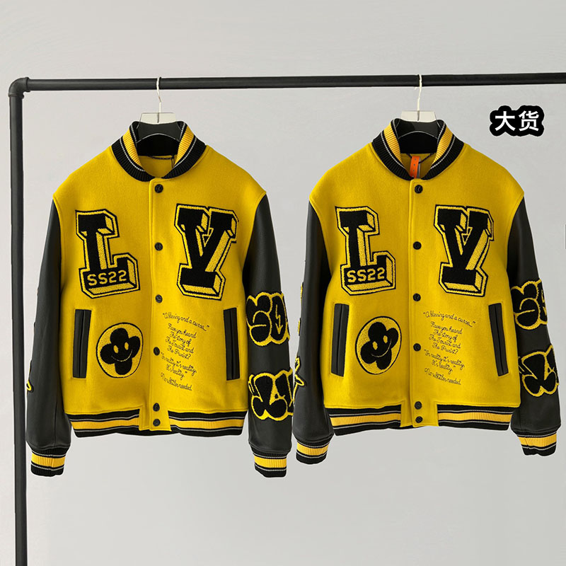 - 루이비통 브랜드의 엠브로이더드 바시티 디자인 가죽 자켓입니다.