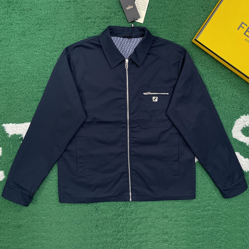 - 펜디 FF 메탈 로고가 포인트인 개버딘 블루종 자켓입니다.