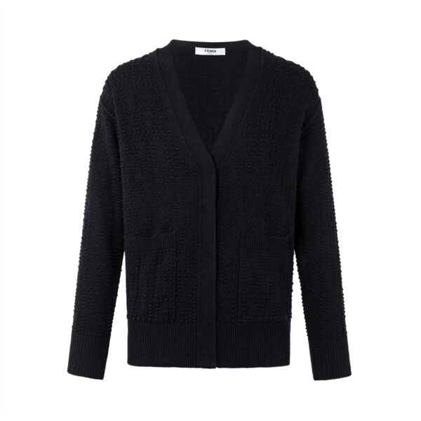 - 펜디 텍스쳐 울 캐시미어 V넥 가디건으로 보온성과 편안함을 동시에 제공합니다.
