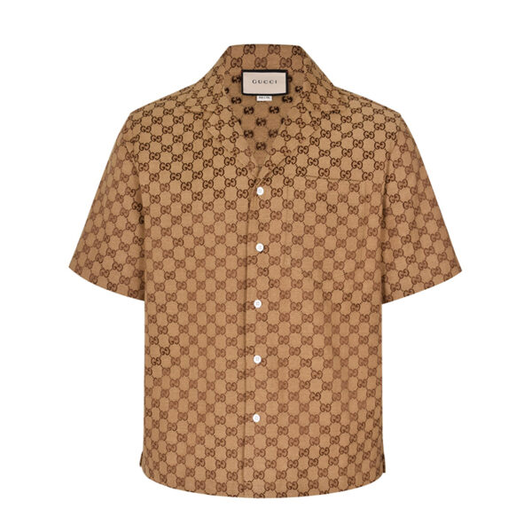 - 구찌 GG 패턴이 올오버 프린트된 반팔 셔츠로 여름철 착용하기 적합한 상의입니다.