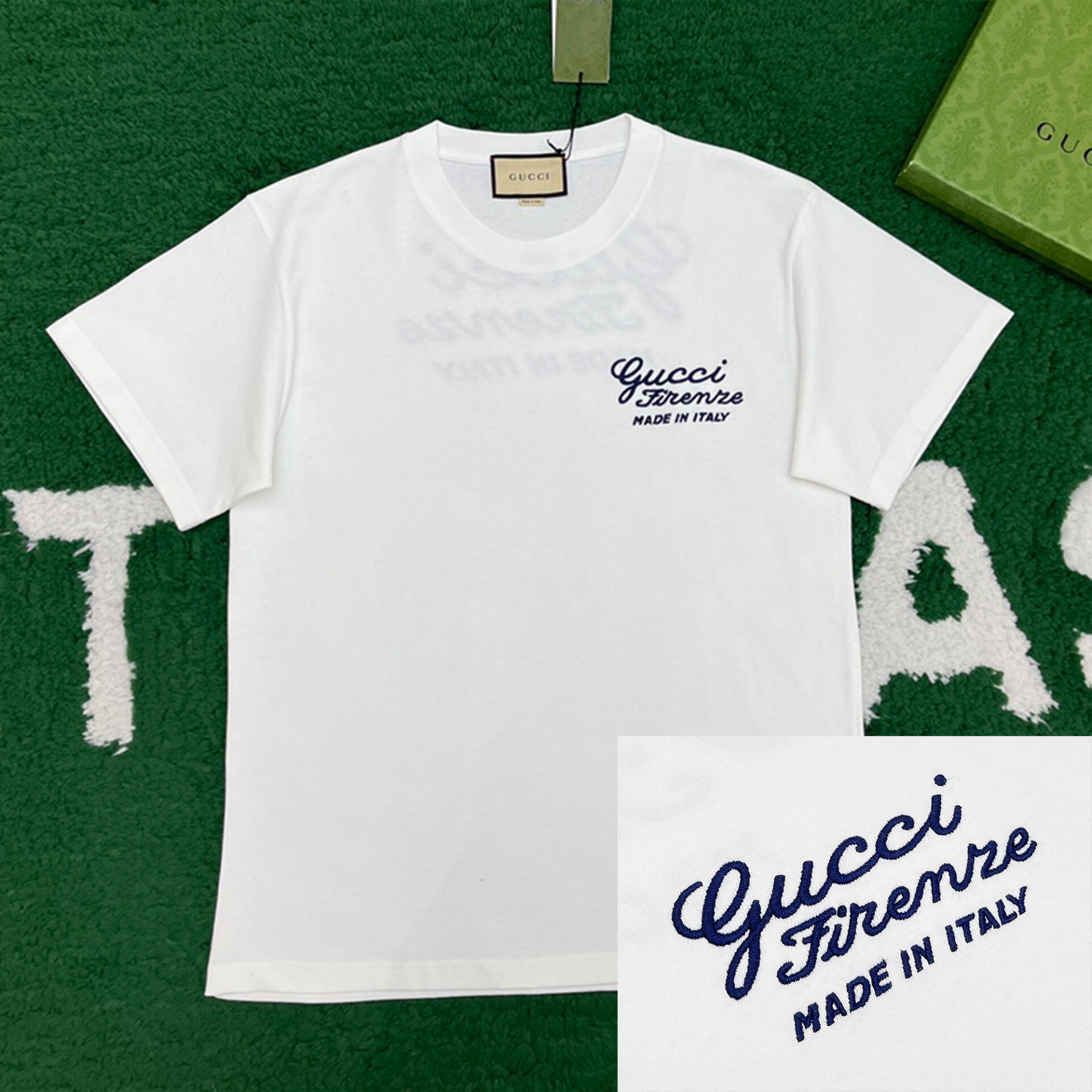 - 구찌 엠브로이더리 코튼 저지 반팔 티셔츠로 일상복에 적합합니다.