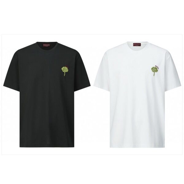 - 이 제품은 구찌 브랜드의 여성용 플로럴 자수 코튼 니트 반팔 티셔츠입니다.