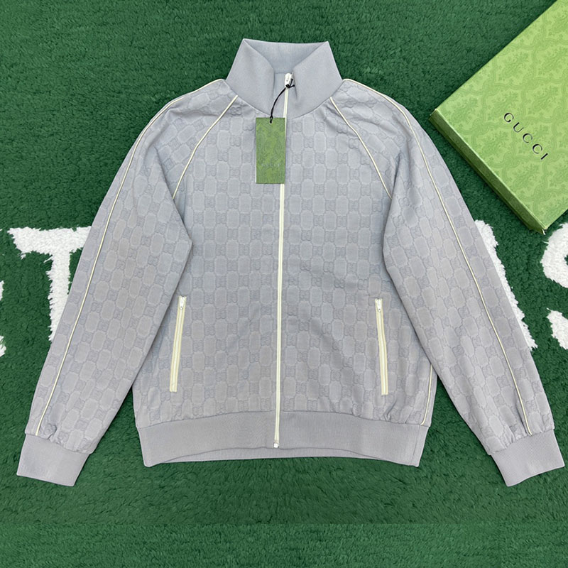 - 구찌 GG 로고 자카드 패턴이 적용된 나일론 소재 집업 자켓과 팬츠 세트입니다.