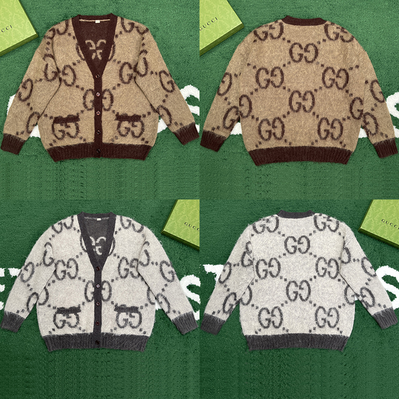 구찌의 GG 리버서블 모헤어 울 가디건입니다. 두 가지 스타일로 활용 가능한 아우터입니다.