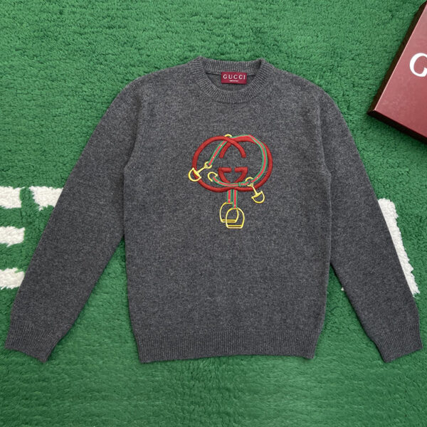 - 구찌 인터로킹 G 자수 울 니트 스웨터로 제작된 여성용 상의입니다.