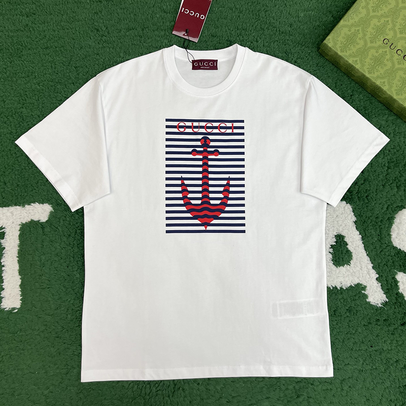 구찌 【잔디집】 메종 로고 프린트 닻 모티브 코튼 저지 반팔 티셔츠(레어) 구찌 【잔디집】 메종 로고 프린트 닻 모티브 코튼 저지 반팔 티셔츠(레어)