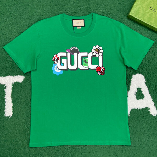 - 구찌의 캐릭터 프린트 코튼 반팔 티셔츠로 일상복에 적합합니다.