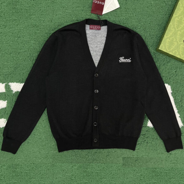 구찌 로고 자수가 돋보이는 가디건입니다. 편안한 착용감으로 다양한 상황에서 활용 가능합니다.
