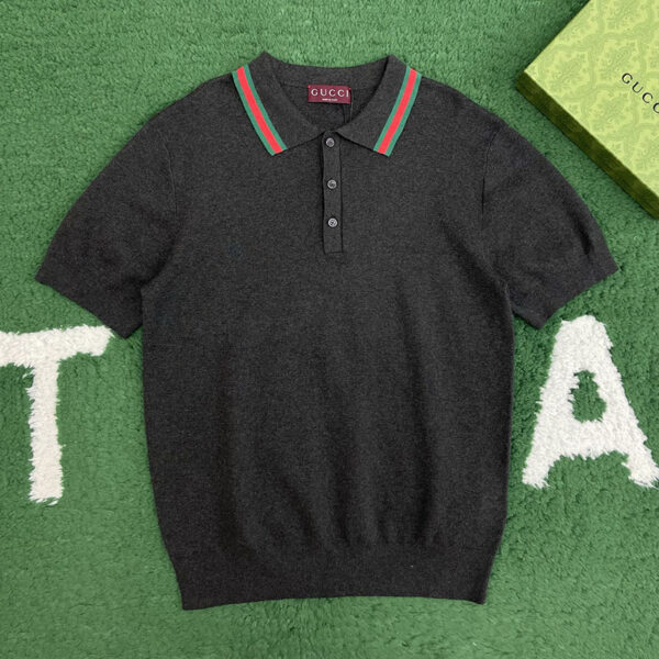 - 구찌 브랜드의 폴로 셔츠 니트로, 코튼과 실크 혼방 소재로 제작되었습니다.