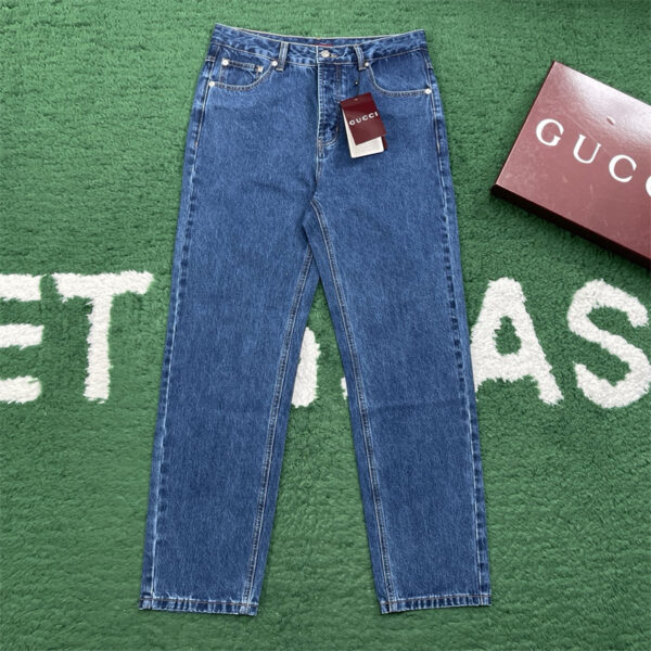 - 구찌 브랜드의 스트레이트 핏 데님 진으로, 착용 용도의 하의입니다.