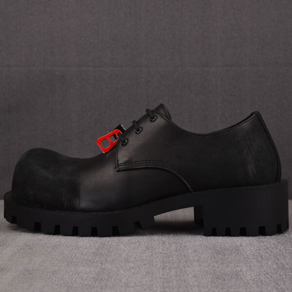 - 견고한 가죽 소재와 레이스업 디자인이 돋보이며 하머 타입 구조가 특징입니다.