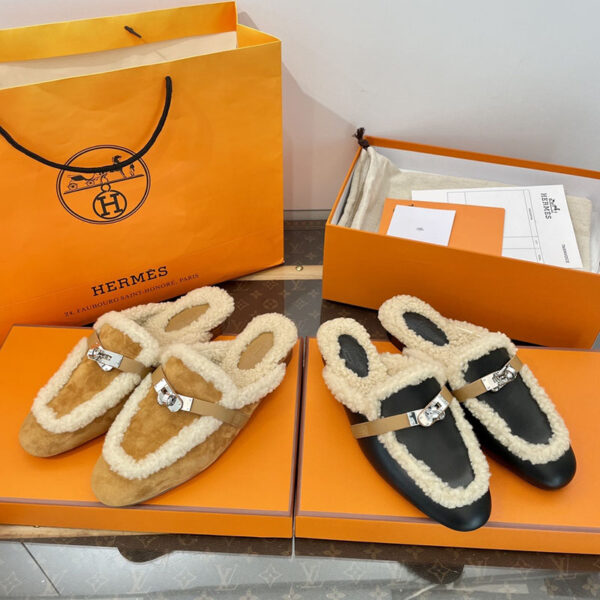 - 에르메스 켈리 오즈 뮬은 여성용 플랫 슈즈입니다.
