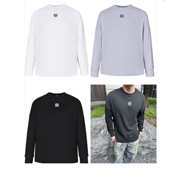 로에베 아나그램 로고가 돋보이는 오버사이즈 긴팔 티셔츠입니다. 일상에서 편안하게 착용할 수 있는 디자인입니다.