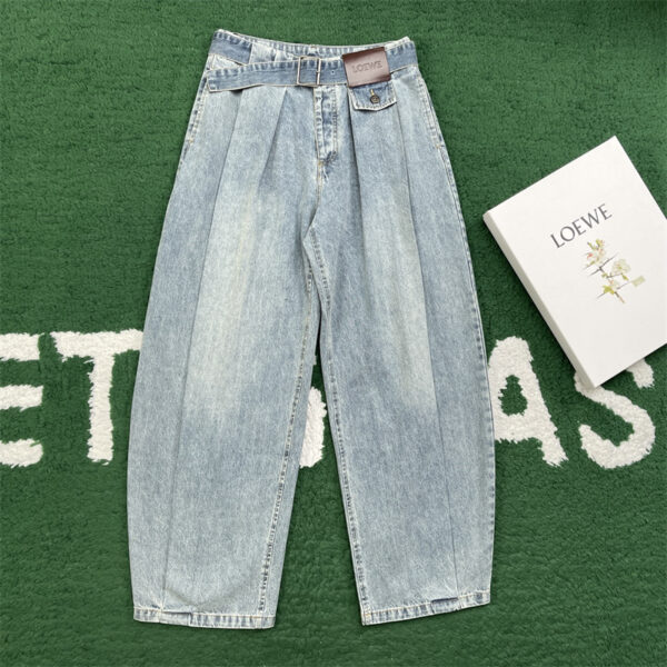 - 벨트 디테일이 포함된 데님 팬츠로 일상적인 착용에 적합합니다.