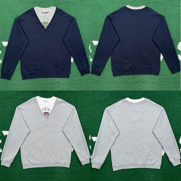 - 브이넥과 라운드네크 디자인이 조합된 긴팔 맨투맨으로 캐주얼한 상의입니다.