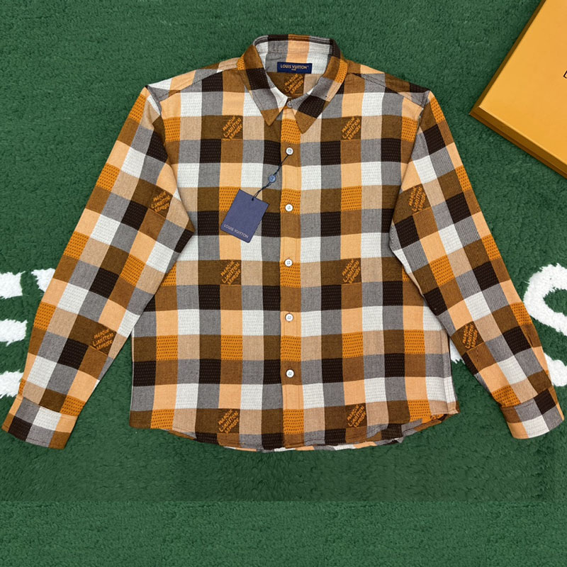 루이비통 버튼 다운 롱 슬리브드 플란넬 셔츠입니다. 기본적인 셔츠 디자인에 플란넬 소재가 사용되었습니다.