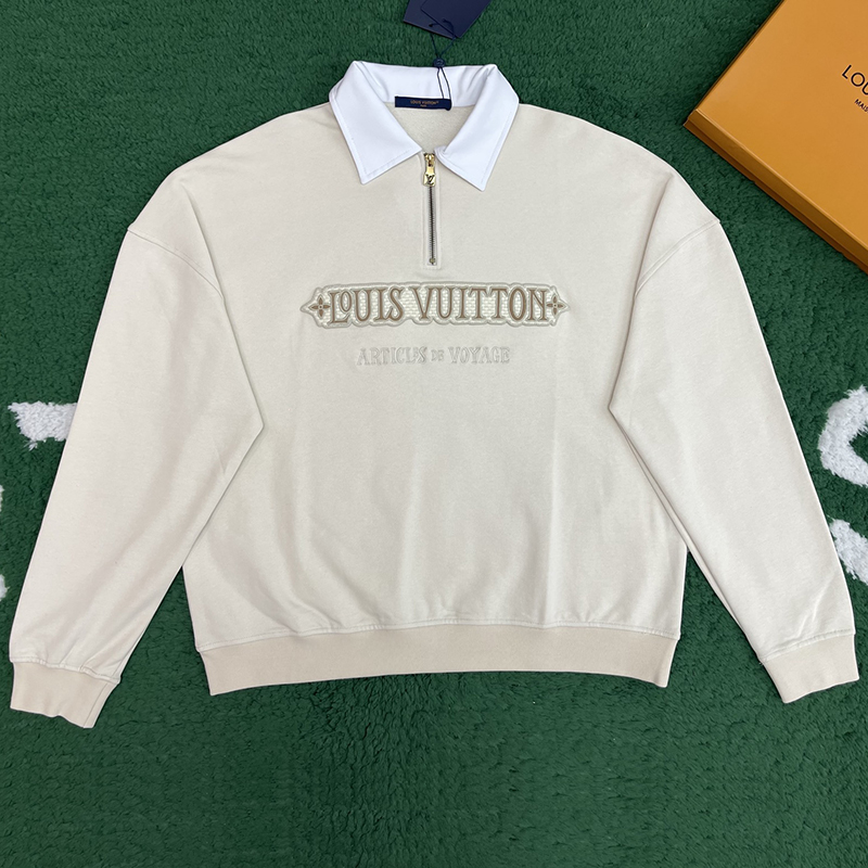 루이비통의 하프 집업 스웨트셔츠입니다. 디자인에 엠벨리시드 디테일이 적용되어 있습니다.