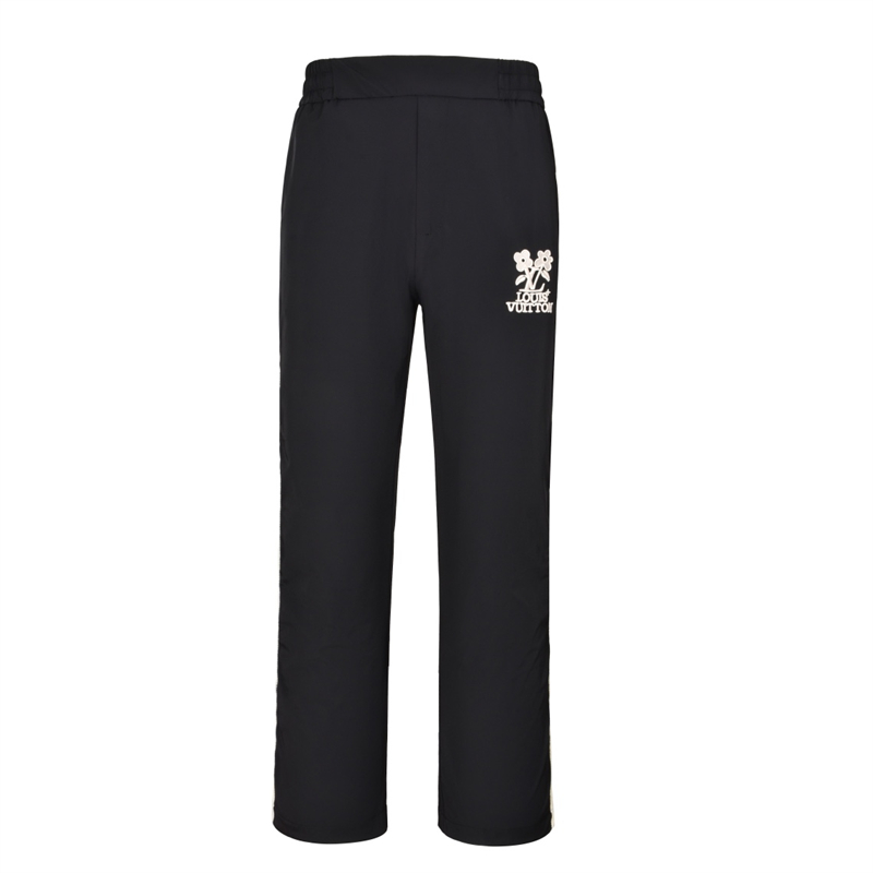 - 루이비통에서 제작한 테크니컬 소재의 트랙팬츠로, 자수 디테일이 돋보입니다.