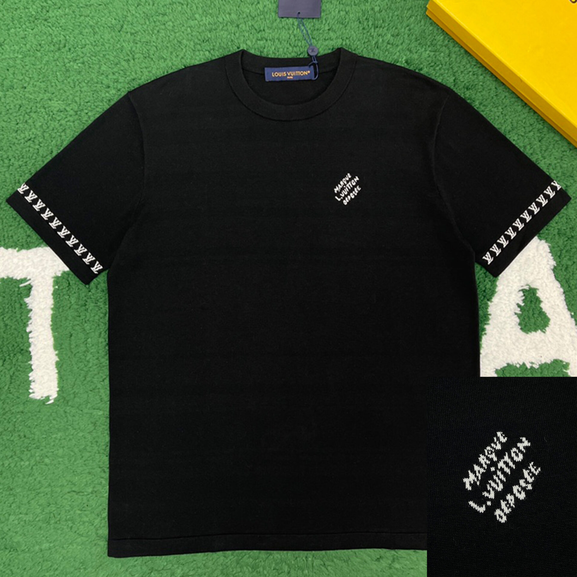루이비통 [ 잔디집 ] 자카드 시그니처 쇼트 슬리브 크루넥 반팔 티셔츠 블랙 루이비통 [ 잔디집 ] 자카드 시그니처 쇼트 슬리브 크루넥 반팔 티셔츠 블랙