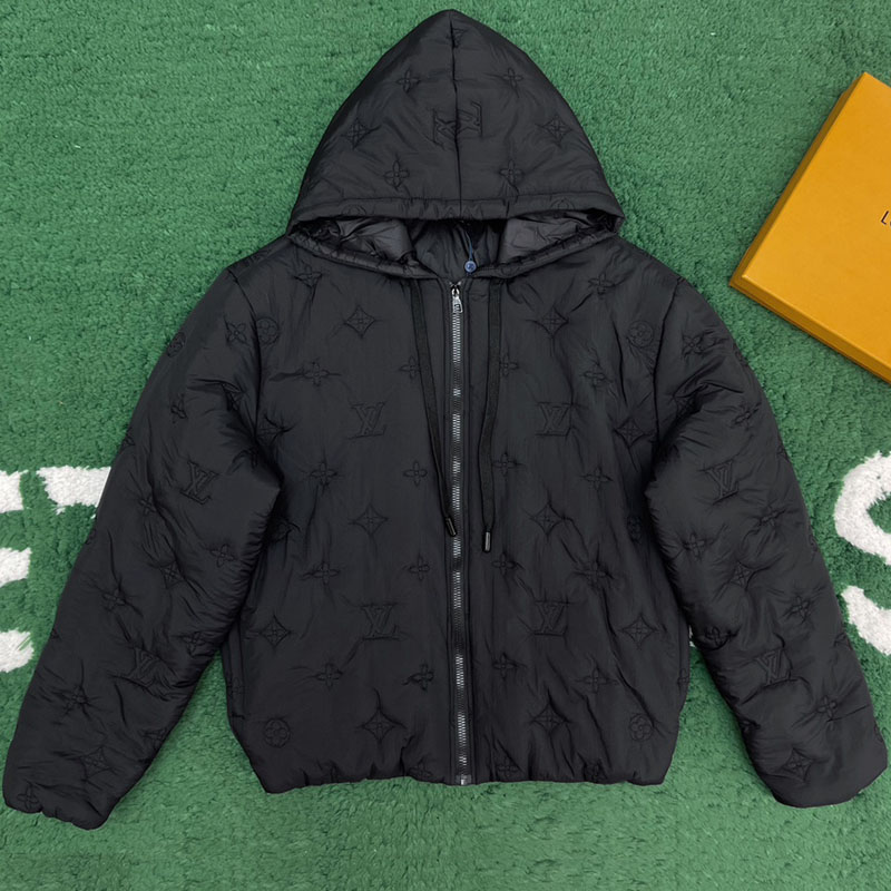 - 루이비통 모노그램 디테일이 적용된 퀼티드 후디 블루종입니다.