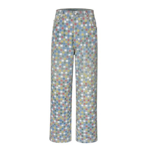 - 와이드 레그 디자인과 다미에 패턴이 특징이며, 루즈한 실루엣을 제공합니다.