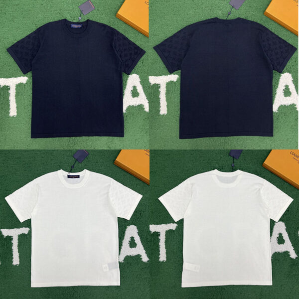- 루이비통 소매 모노그램 쇼트 슬리브드 코튼 크루넥 티셔츠로 기본 상의 제품입니다.