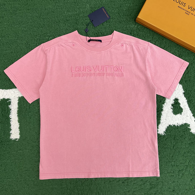 루이비통 【잔디집】 시그니처 워시드 리브드 자수 반팔 티셔츠(레어)