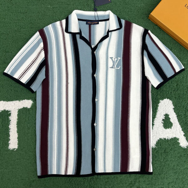 • 루이비통의 숏 슬리브드 셔츠로 스트라이프 패턴과 크로셰 직조가 결합된 제품입니다.