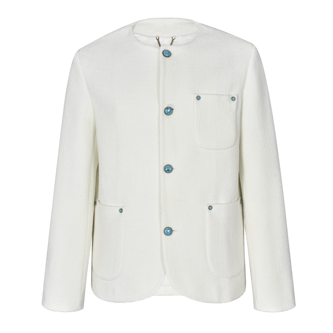 - 루이비통 25SS 컬렉션의 트위드 자켓으로 고급스러운 디자인과 구조적 특징이 돋보이는 아우터입니다.