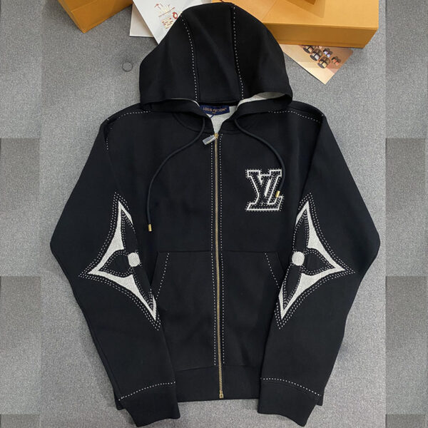 - 루이비통 모노그램 패턴이 적용된 후드 집업 아우터로 실용적인 외출용 의류입니다.
