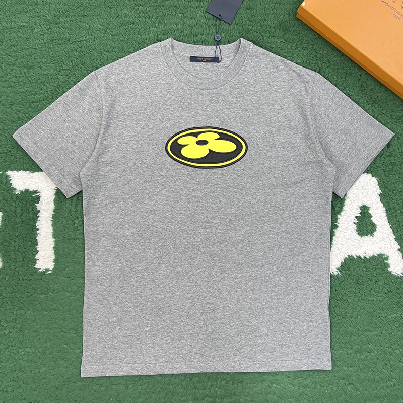 루이비통의 LV 플라워 그래픽 패츠가 돋보이는 반팔 티셔츠입니다. 캐주얼한 분위기 연출에 적합한 아이템입니다.