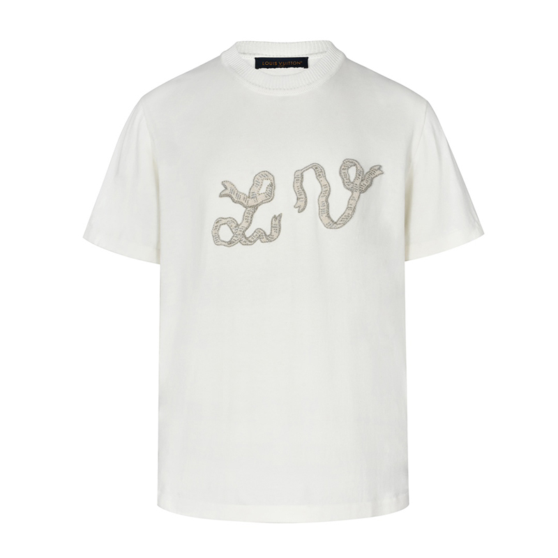 - LV 리본 자수 디자인이 티셔츠 전면에 위치하여 심플하면서도 포인트가 됩니다.