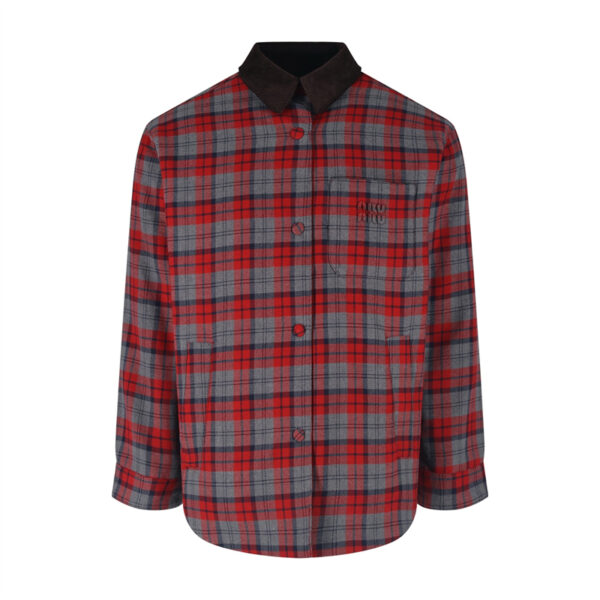 - 미우미우 체크 패턴의 버진 울 오버셔츠로 간절기에 착용하기 적합한 상의입니다.