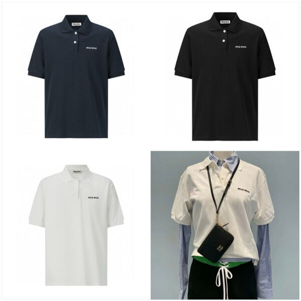 - 미우미우 코튼 피케 폴로 셔츠는 가볍고 통기성이 좋은 상의입니다.
