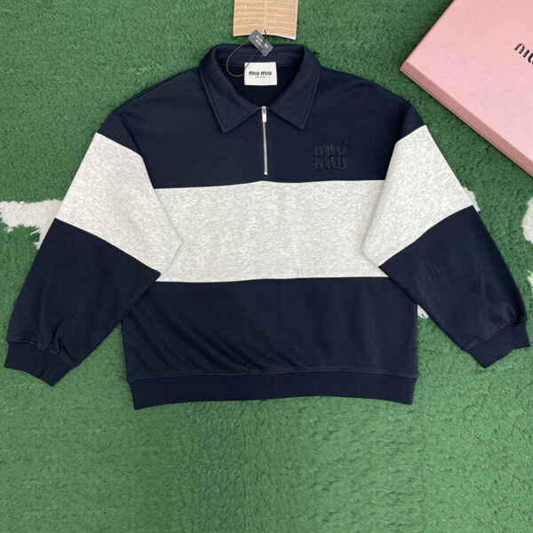 미우미우 하프 집업 코튼 스웨트셔츠입니다. 실용적인 상의로 활용할 수 있습니다.